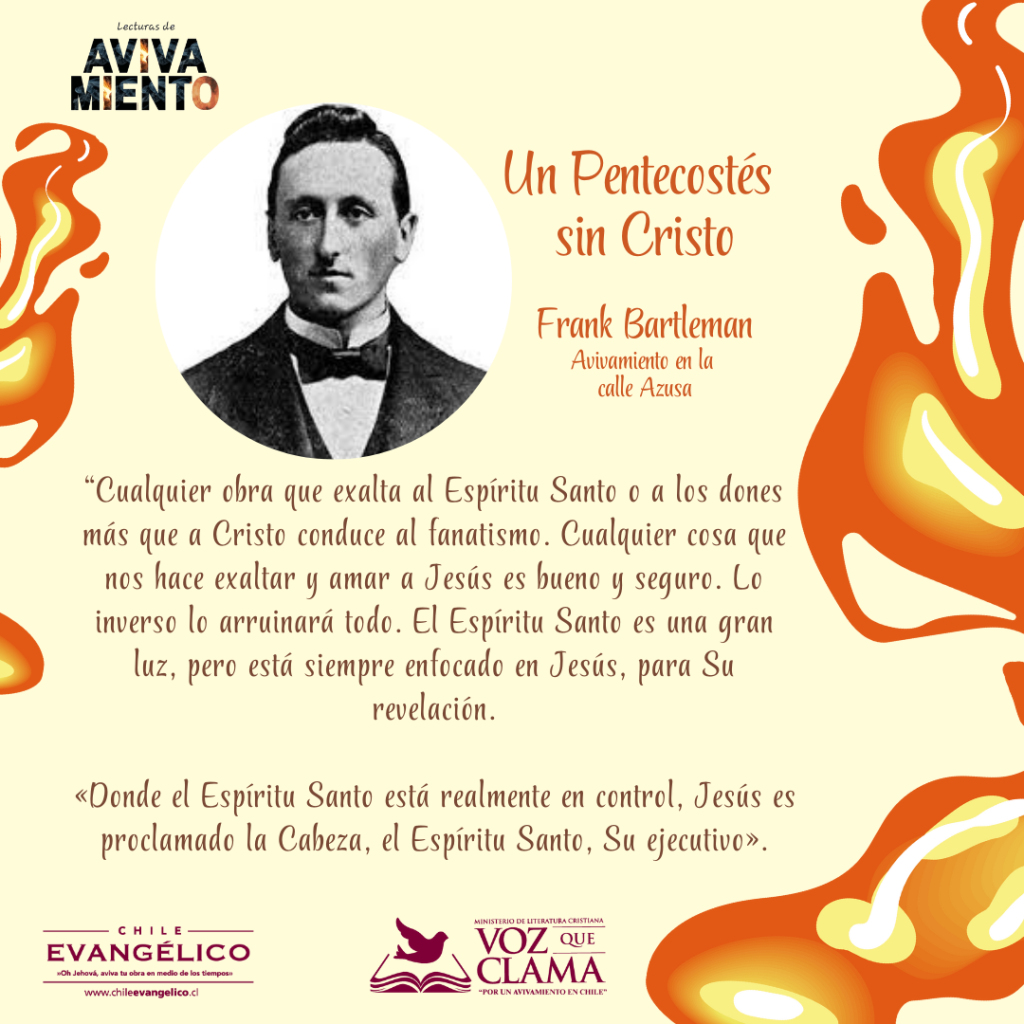 Frank Bartleman fue testigo ocular del derramamiento del Espíritu Santo en 1907 en Azusa Street, Los Ángeles. Se le ha caracterizado como el Reportero del avivamiento de Azusa Street. Hace casi 75 años, durante el derramamiento, escribió un tratado advirtiendo de un Pentecostés sin Cristo.